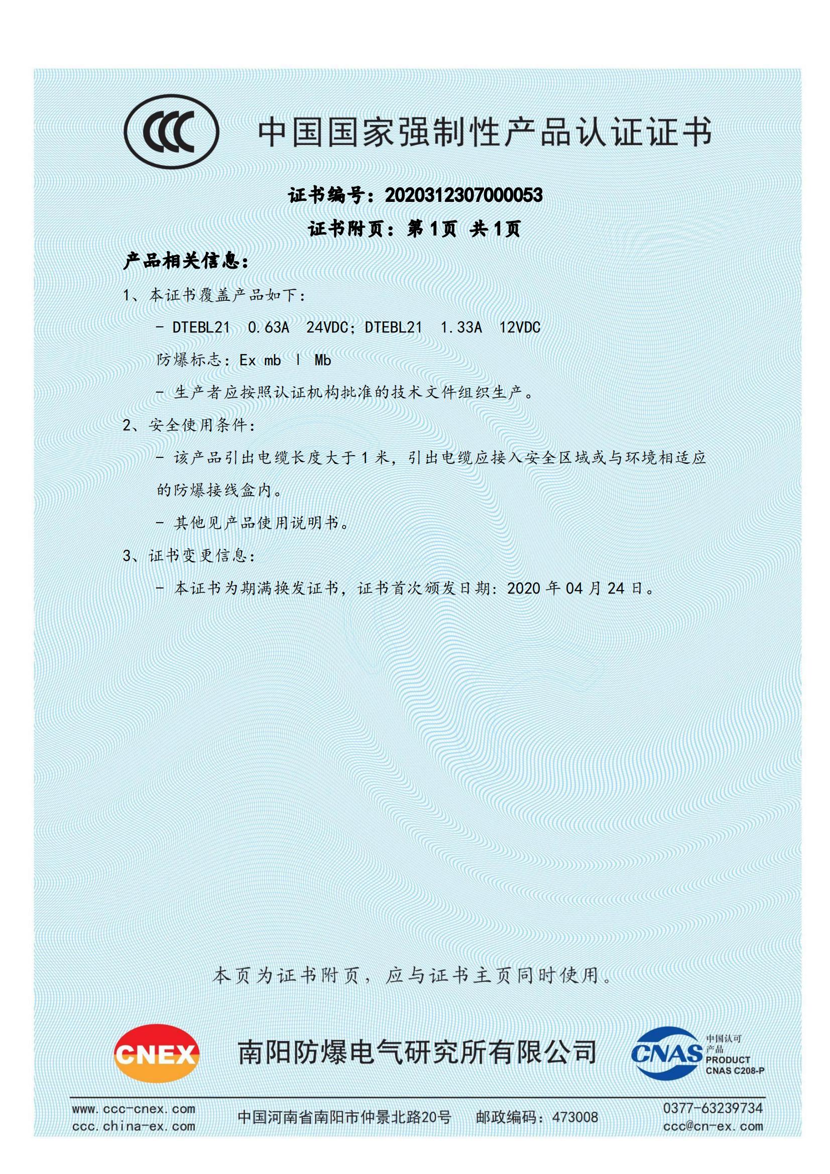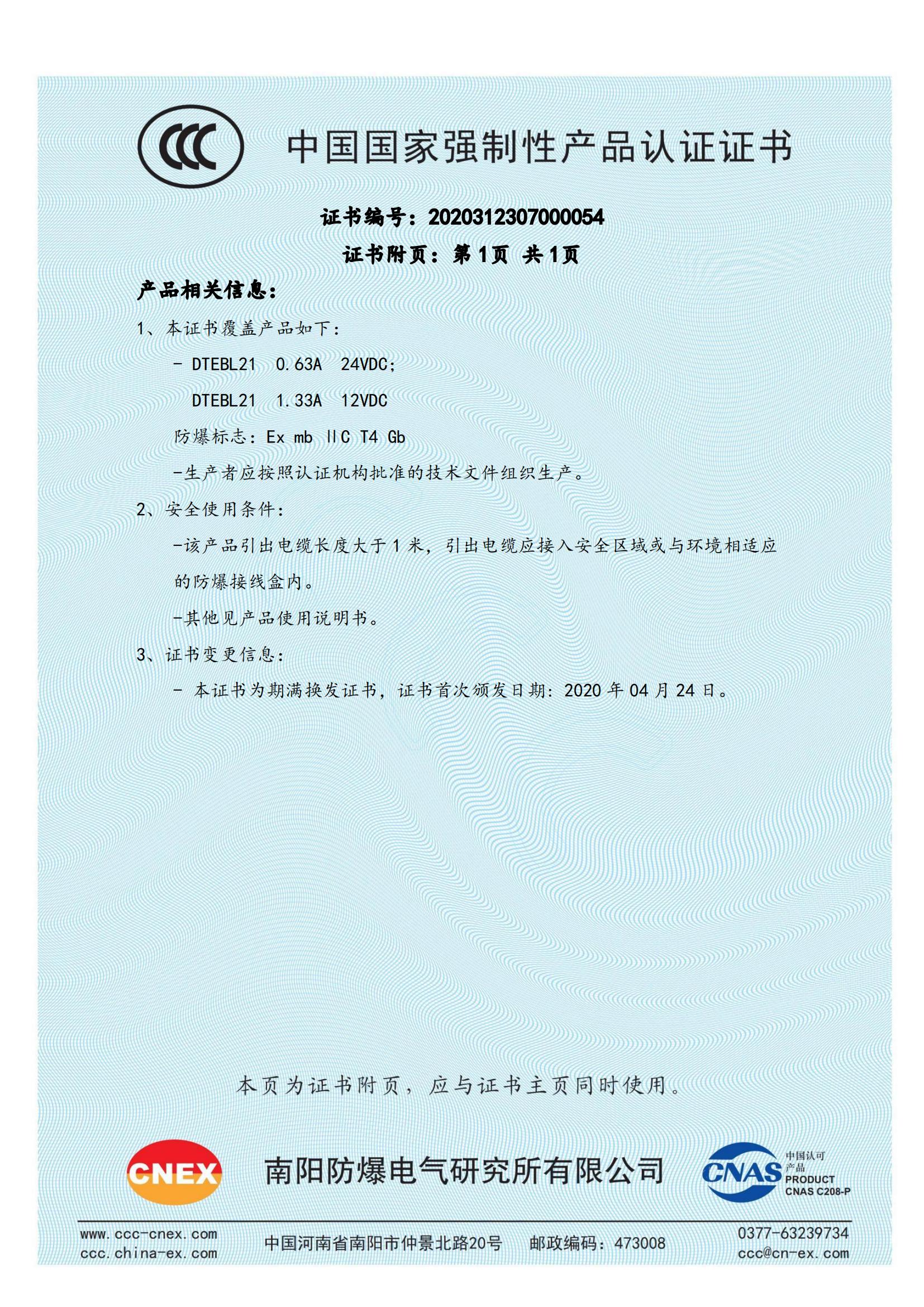 2020312307000052 矿用隔爆型液压阀用直流电磁铁CCC证书 有效期至2030年4月23日_01